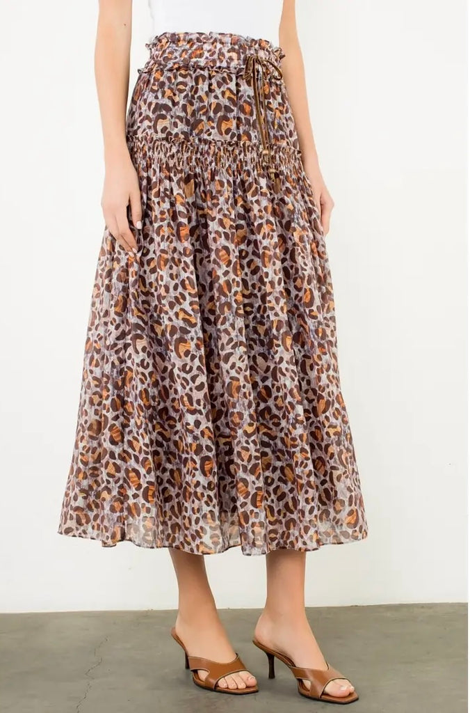 Smocked Waist Leopard Maxi Skirt