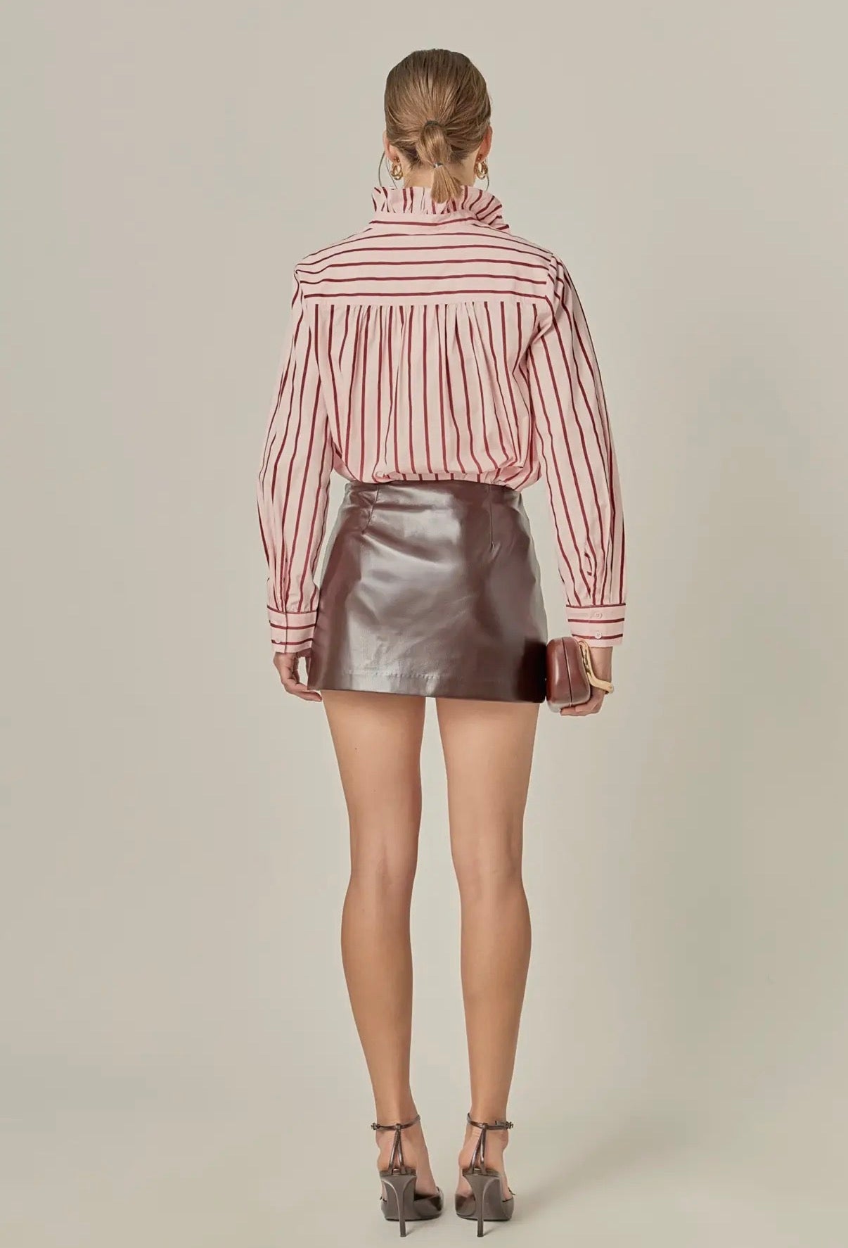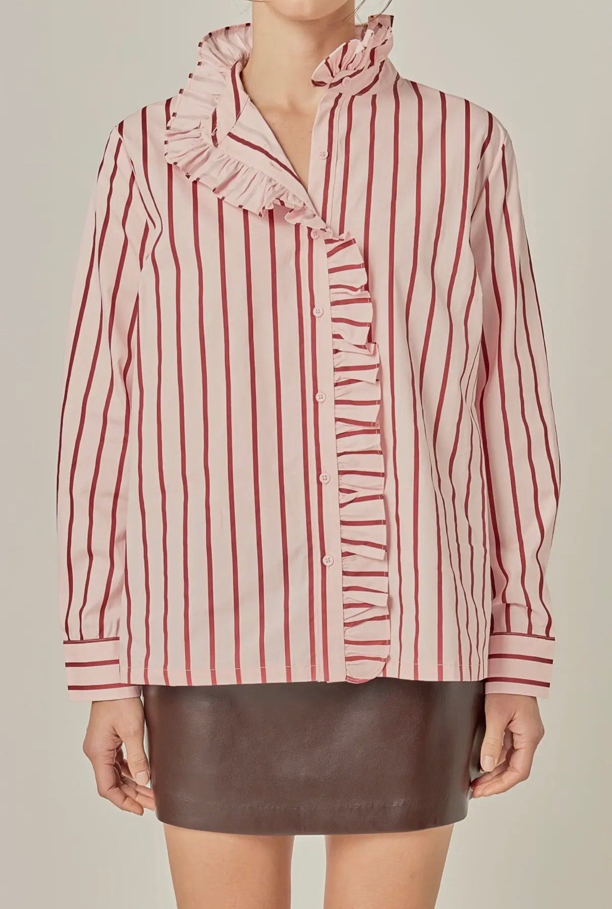 Ruffled Striped Button up Shirt - Xsmall is backordered and will ship as soon as it is back in stock.
