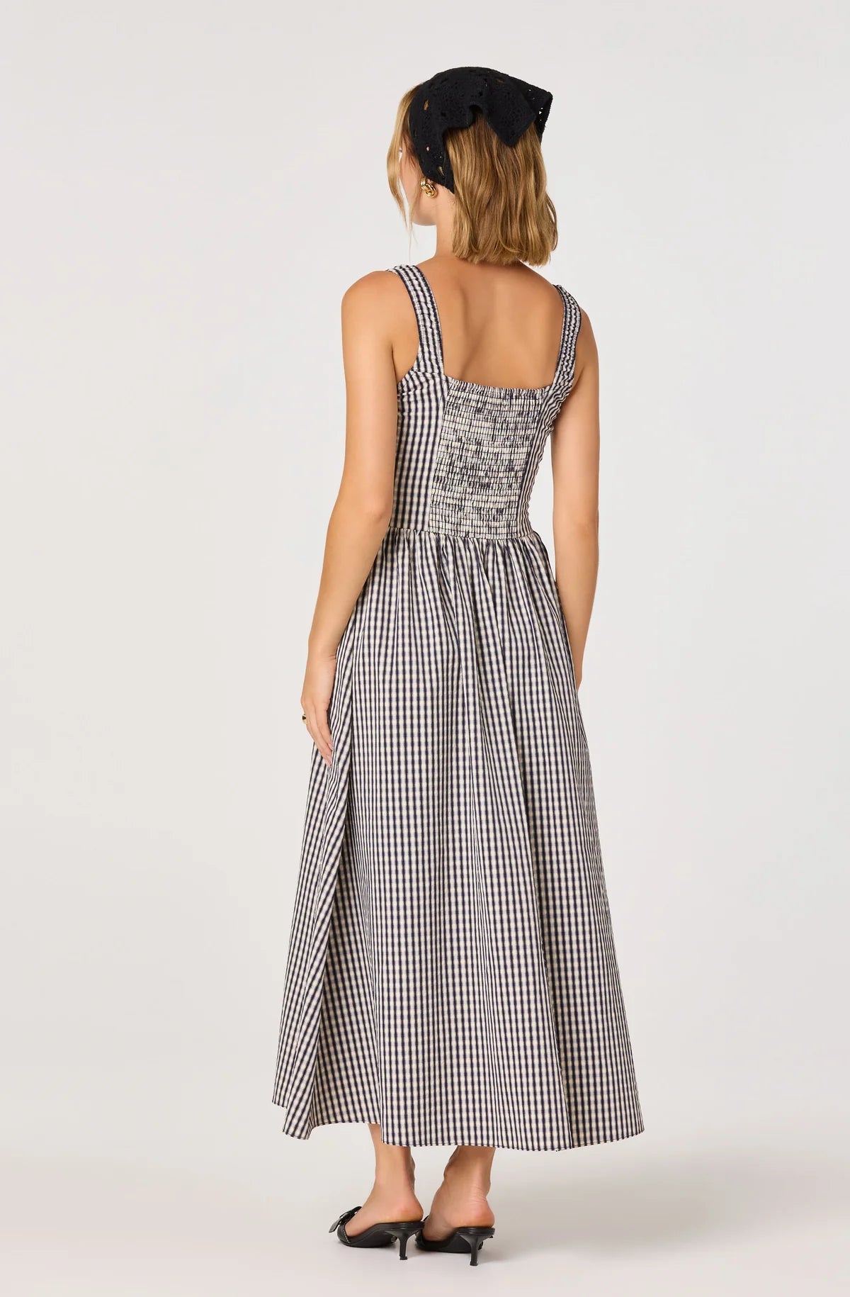 Classic gingham checks meet countryside charm in this breezy maxi dress with adjustable details throughout. Hidden side pockets and a full button-front make it as practical as it is pretty.