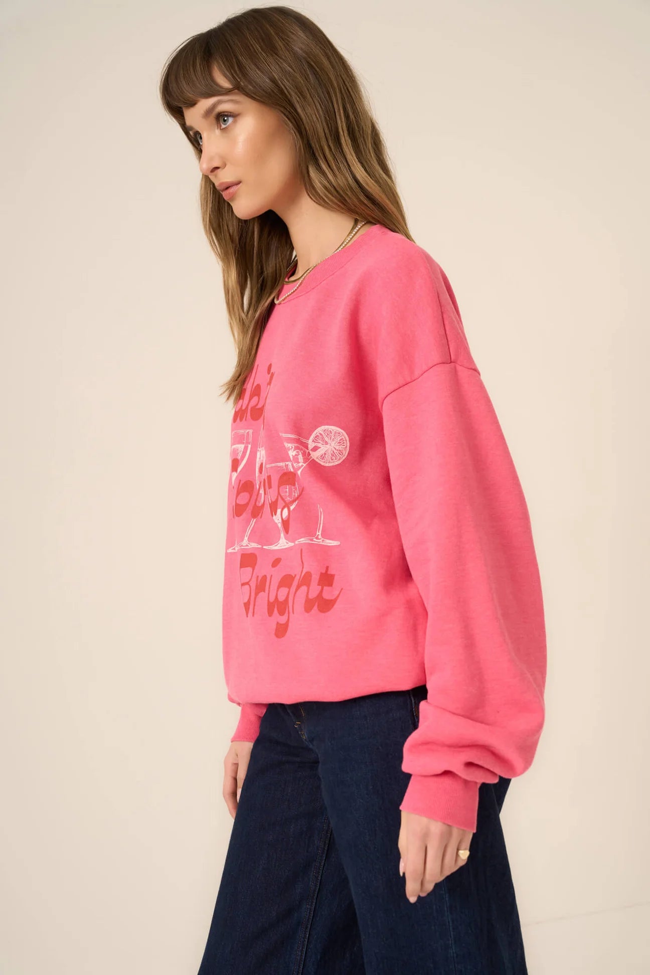 The Making Spirits Bright Sweatshirt will get you into the festive spirit. Crafted from our soft fleece, this sweatshirt prioritizes comfort with its relaxed fit, drop shoulders, and classic crew neckline. The retro-inspired graphic adds a playful pop of pink, making it perfect for layering or wearing solo throughout the holiday season.