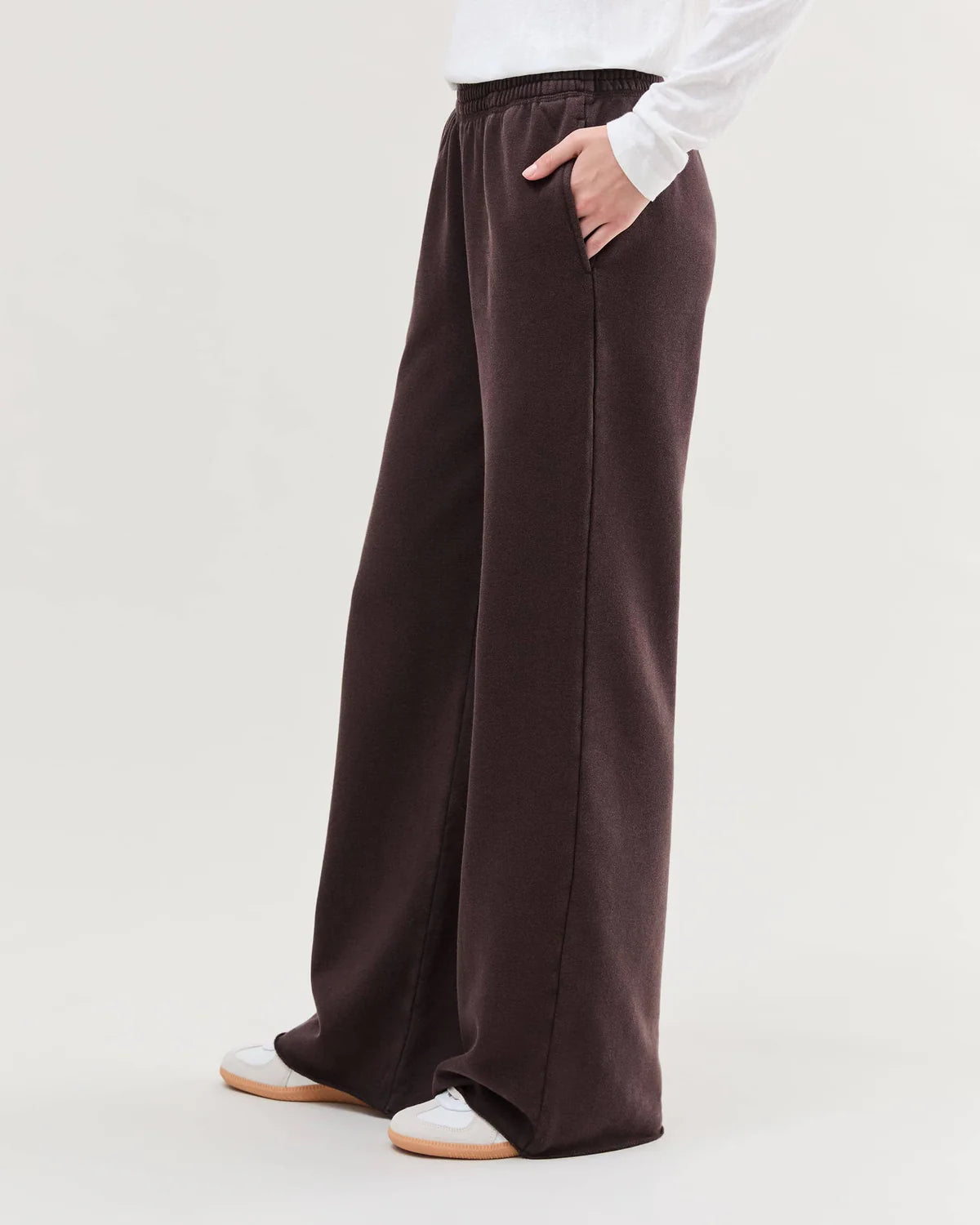 The Recycled Fleeced Wide Leg Pant-Mineral Ganache