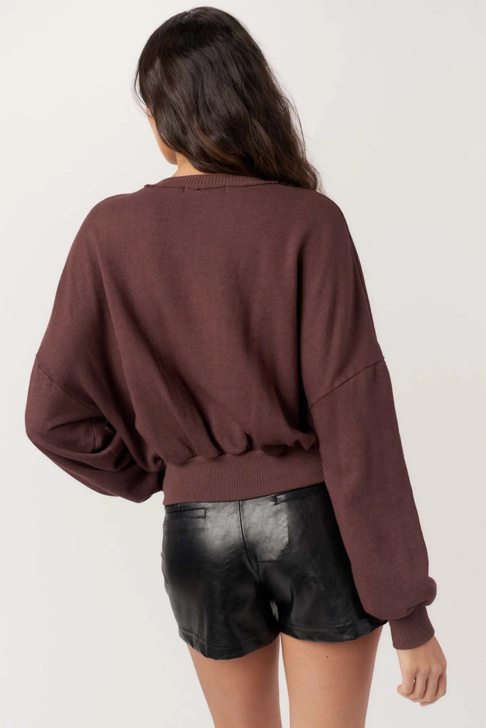 The Evie Pleated Crew Sweatshirt gives a refined twist to a classic crew. Cut with a relaxed fit, it’s defined by soft pleating at the waist just above the wide ribbed hem, creating a subtle cinched shape. Finished with billowed sleeves and ribbed cuffs, this style balances ease and structure in one.