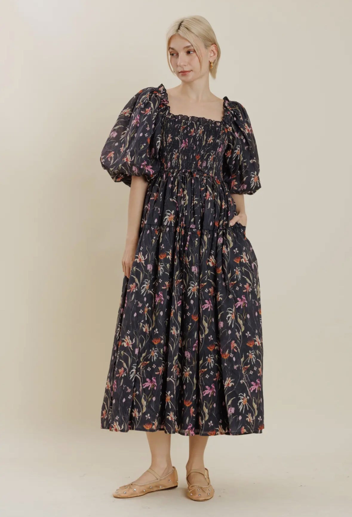 Floral Smocked Maxi Dress - Xsmall is backordered and will ship as soon as it is back in stock.