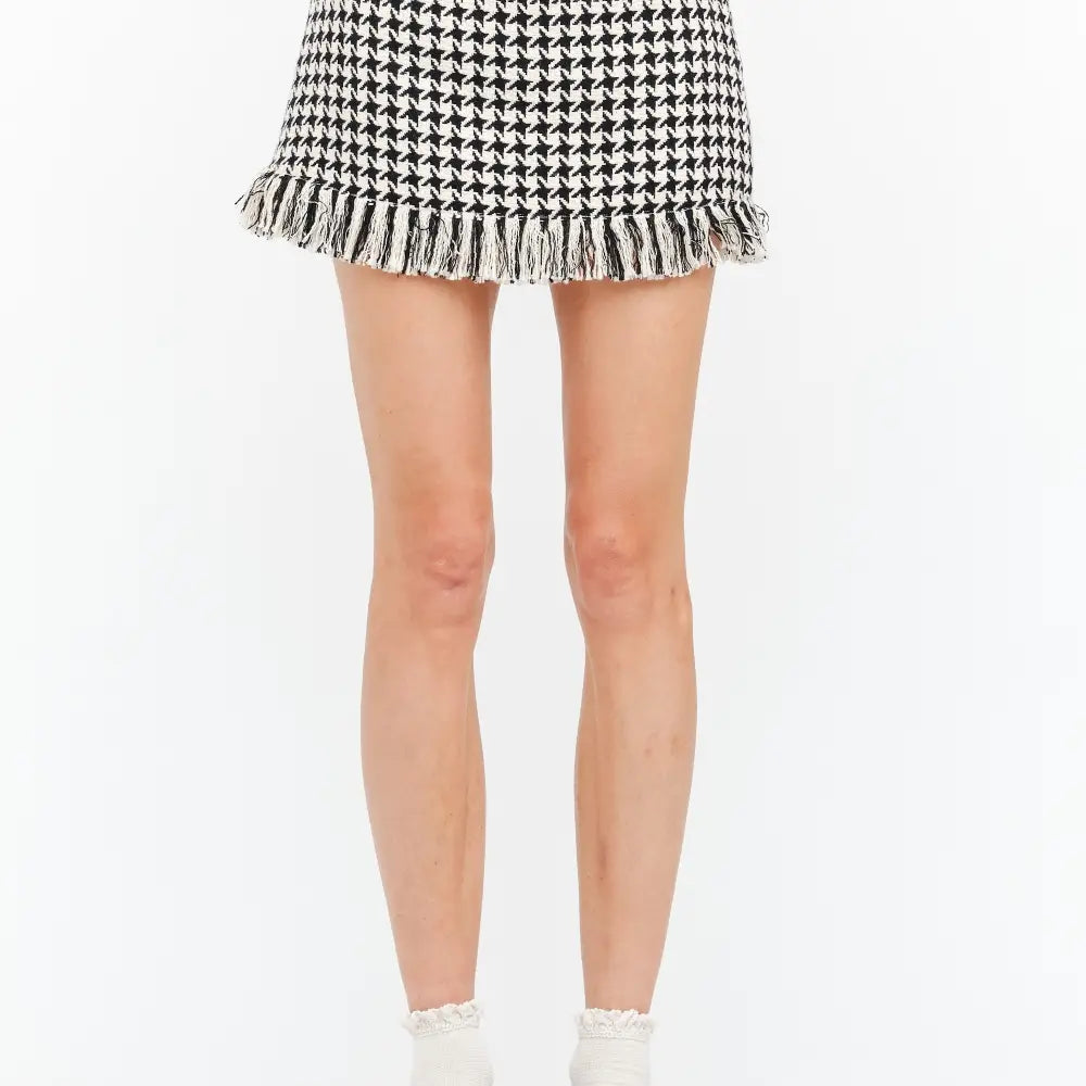 Hayley Skirt Houndstooth Mini Skirt with Fringe