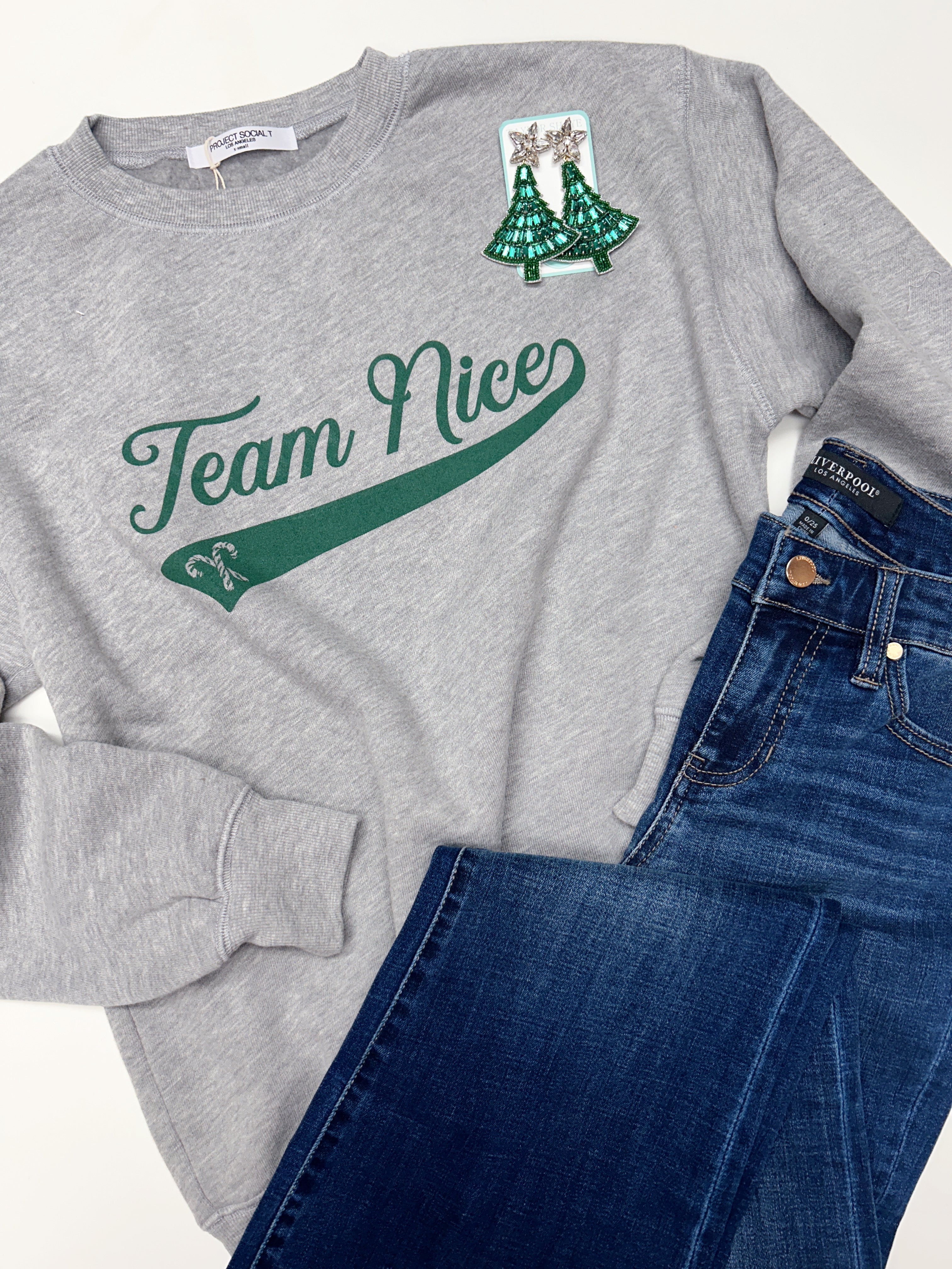 Team Naughty/ Team Nice Reversible Sweatshirt - Xsmall is backordered and will ship as soon as it is back in stock.