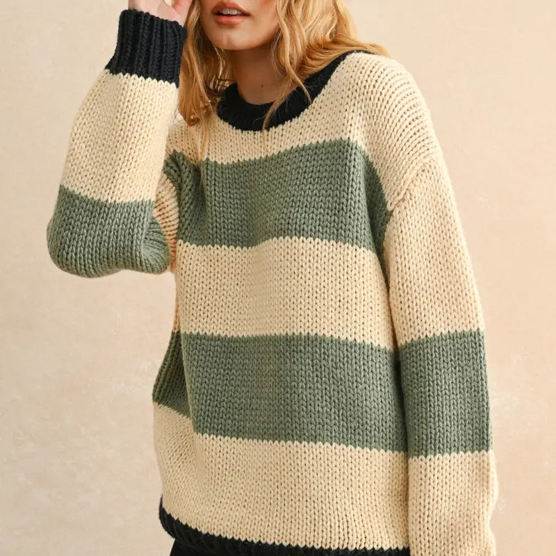 Stripe Pattern Sweater Top