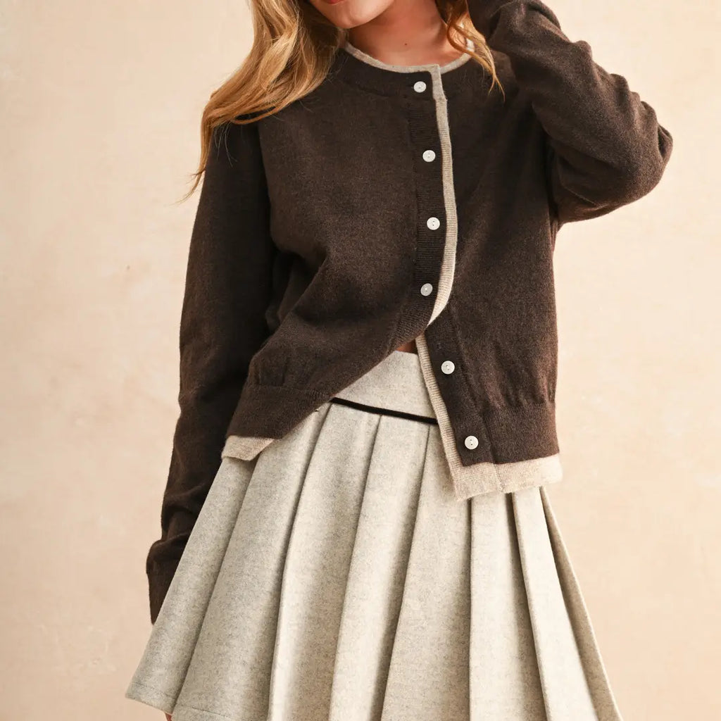 Color Contrast Button Front Cardigan