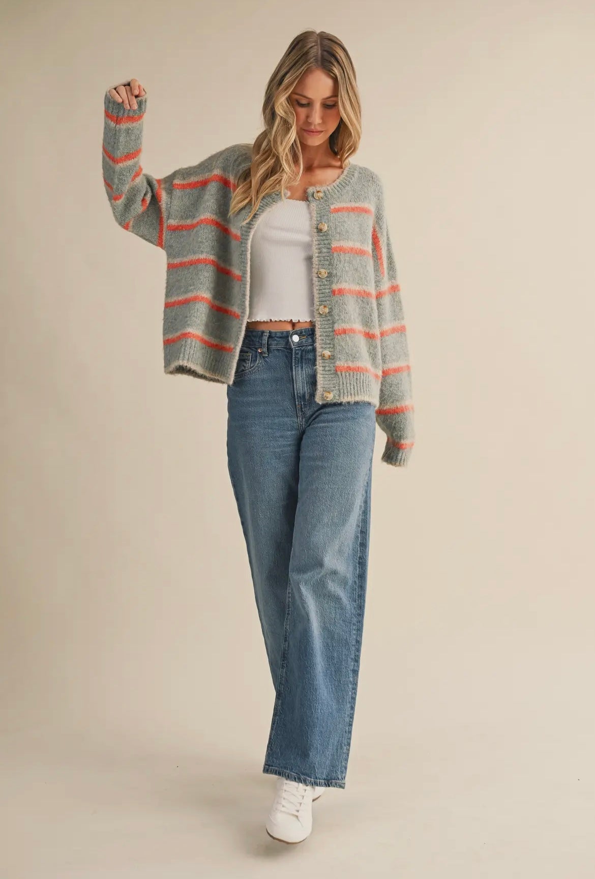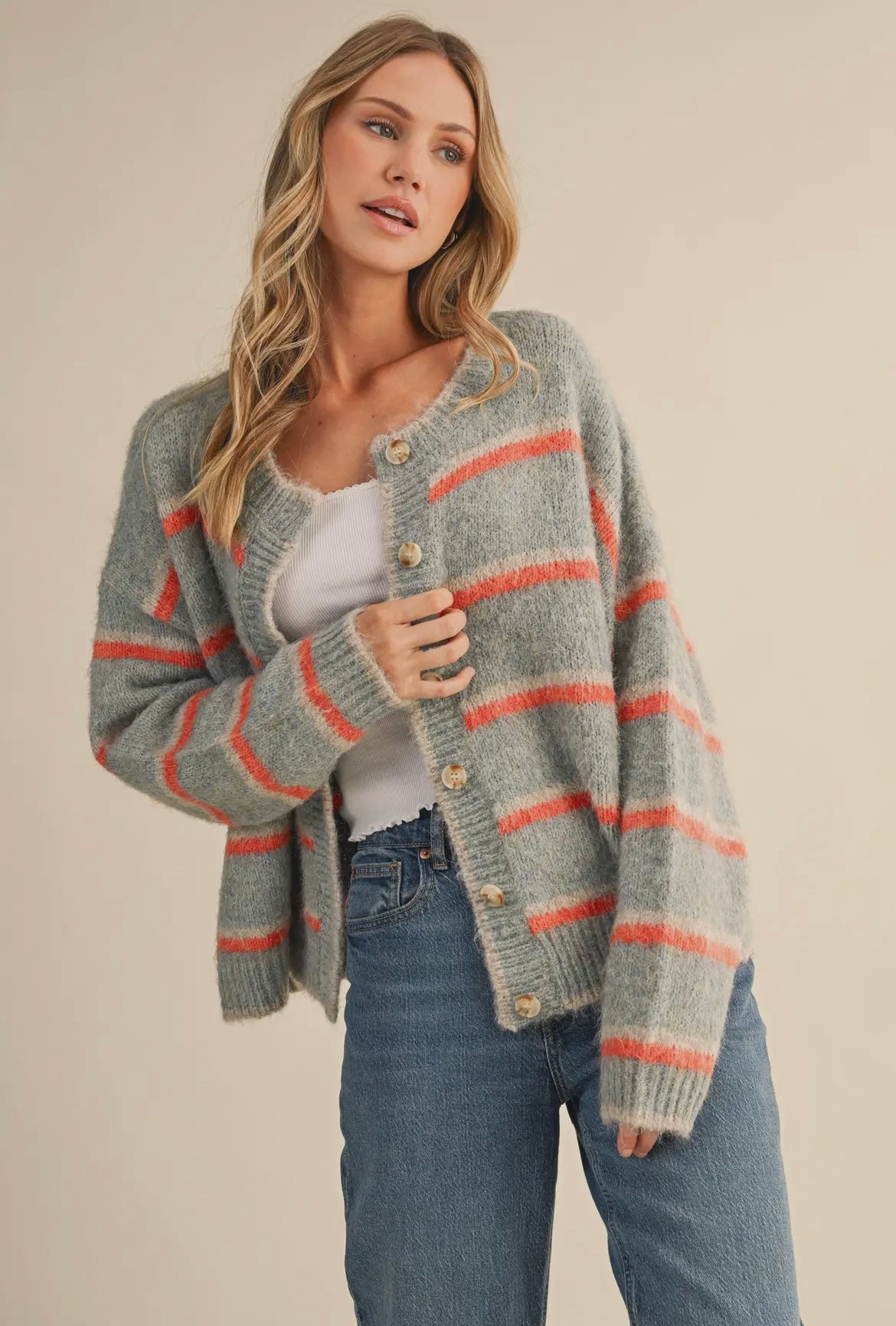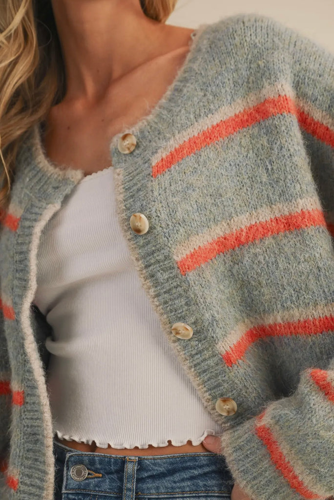 Multi Striped Cardigan - Blue