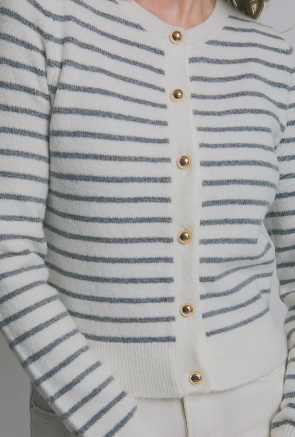 Parisian Striped Gold Button Cardigan - Medium is backordered and will ship as soon as it is back in stock.