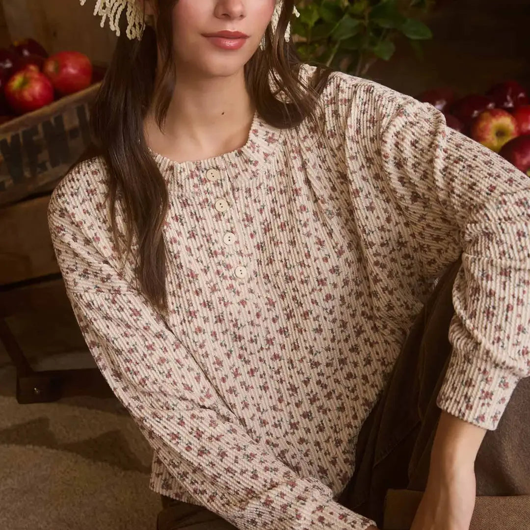 Floral Long Slv Henley