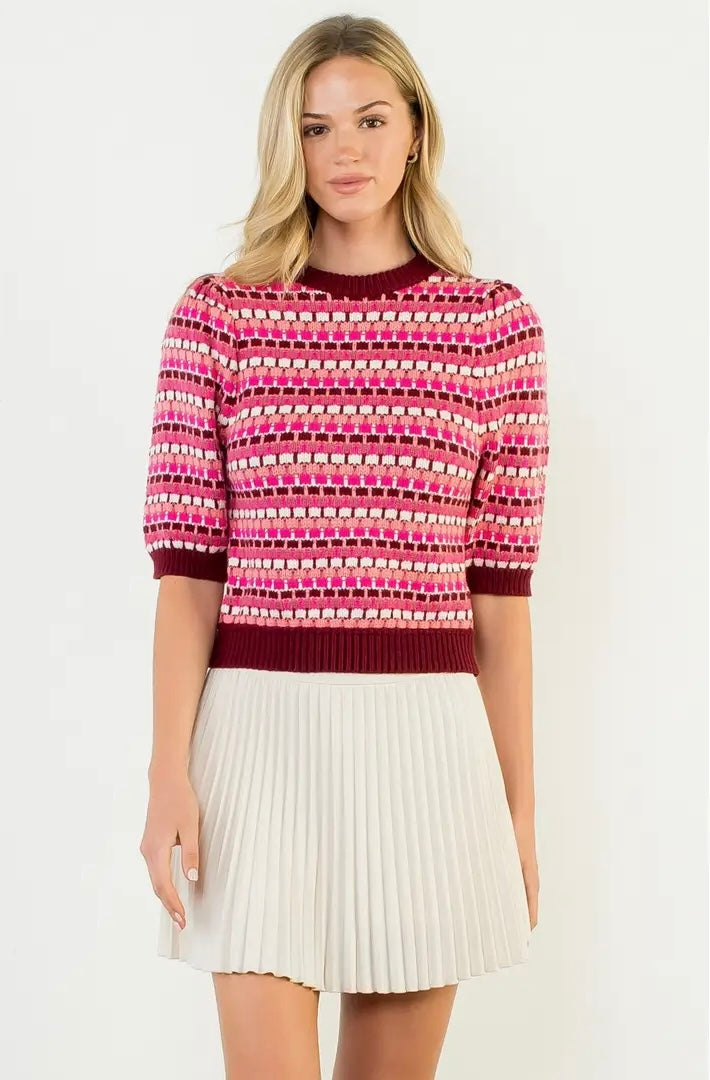 Textured Striped Puff Sleeve Knit Top - Xsmall is backordered and will ship as soon as it is back in stock.