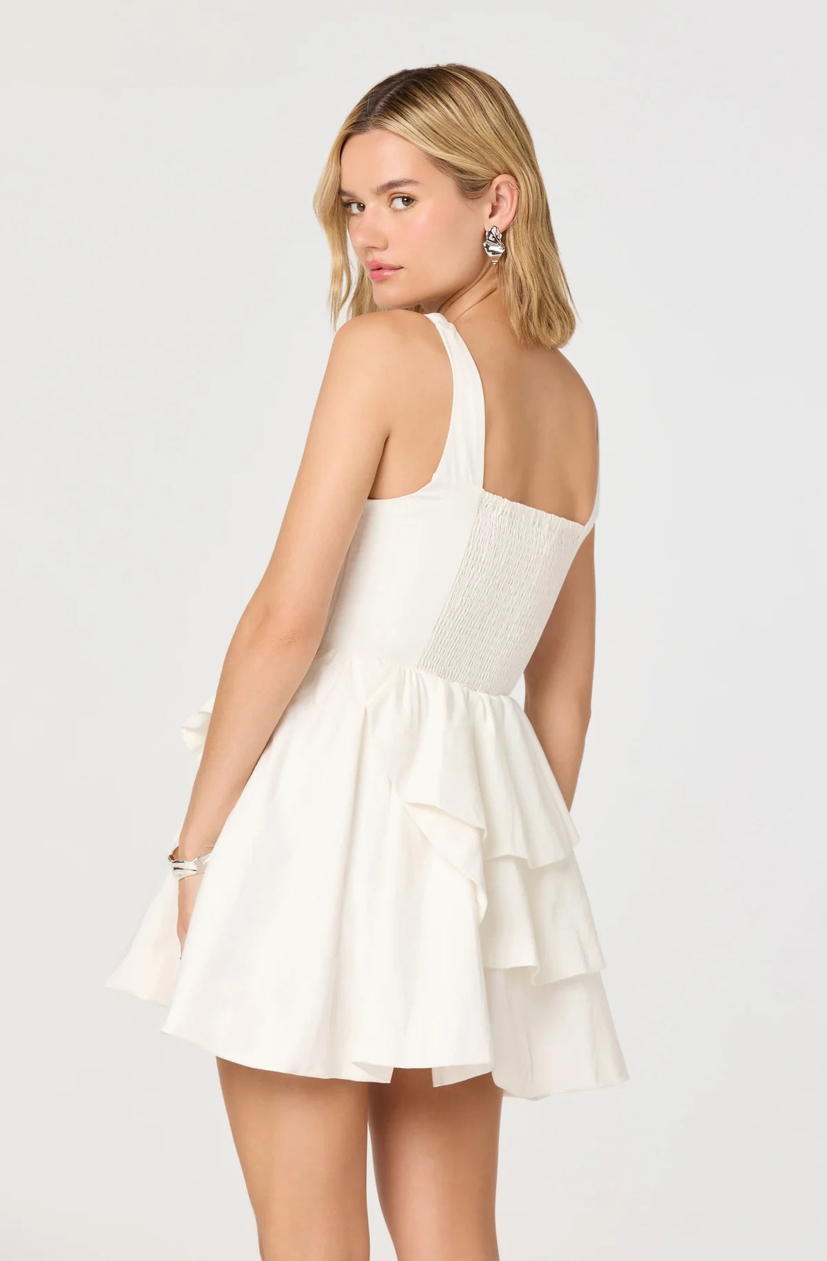 Clean lines and feminine flair define this sweetheart neck, ruffle tiered mini dress. Elegant yet playful, it's perfect for bridal showers, bachelorette parties or your next big event.