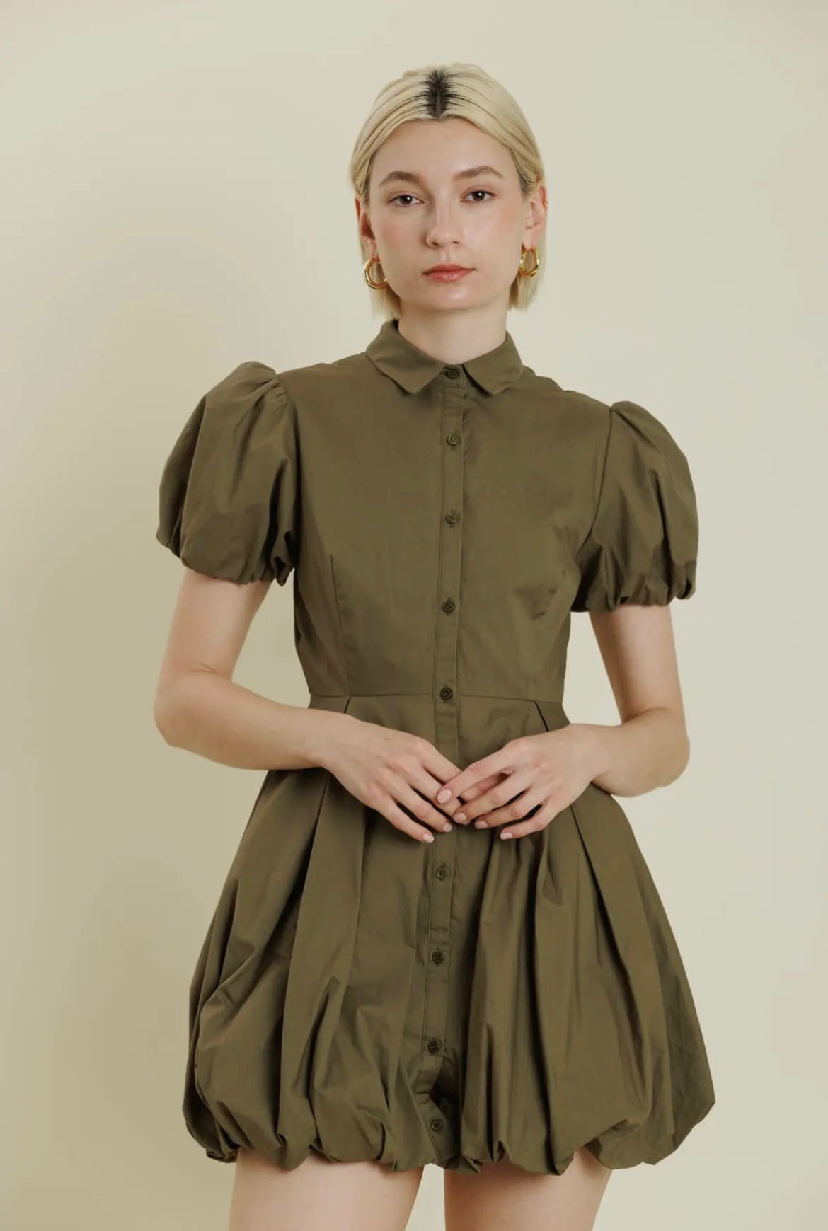 Bubble Hem Mini Shirt Dress