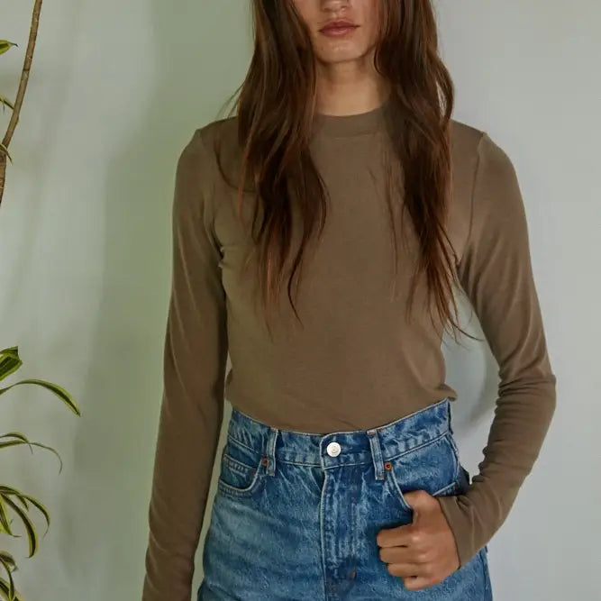 Knit Mock Neck Long Sleeve - Coffee - Small is backordered and will ship as soon as it is back in stock.