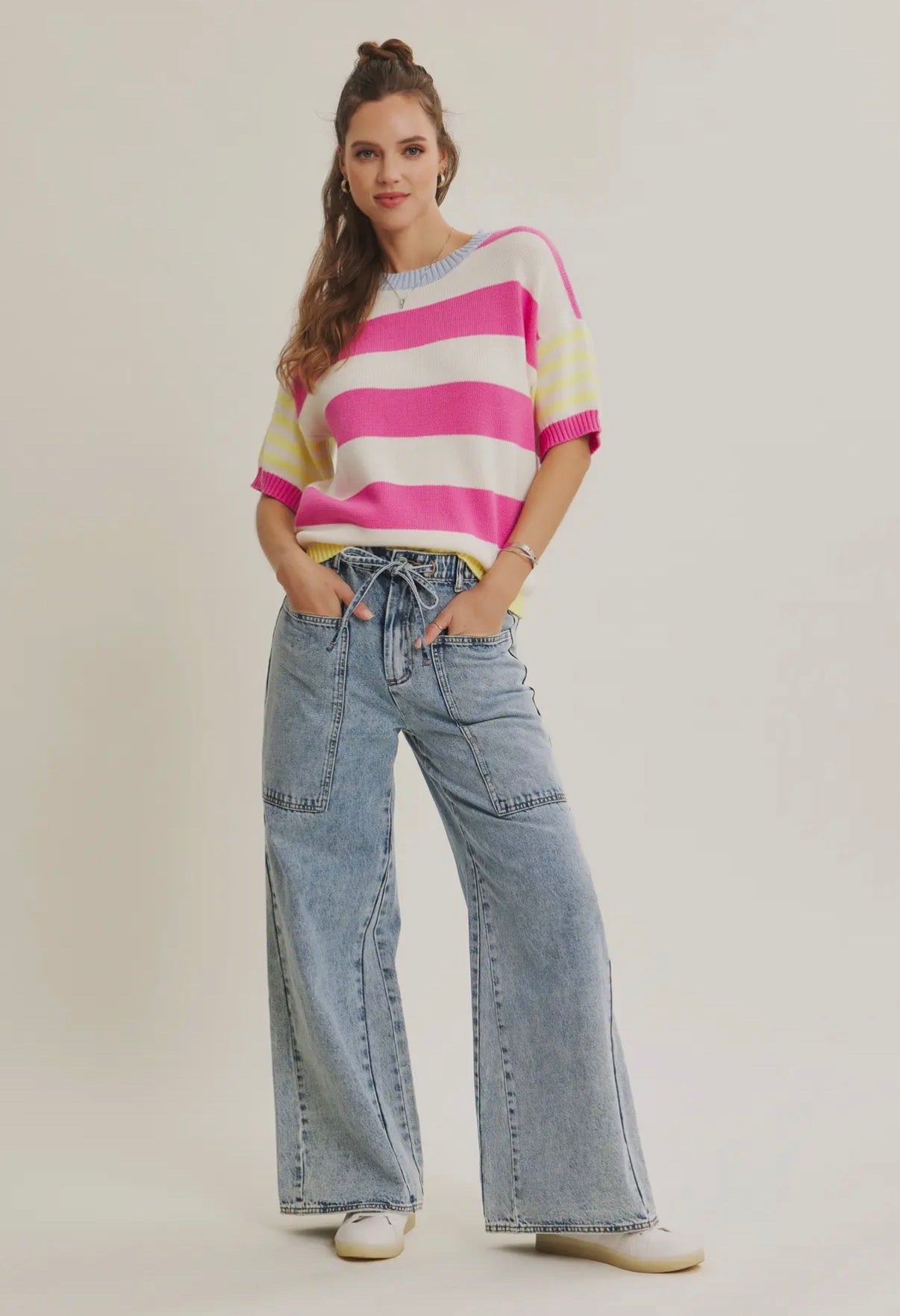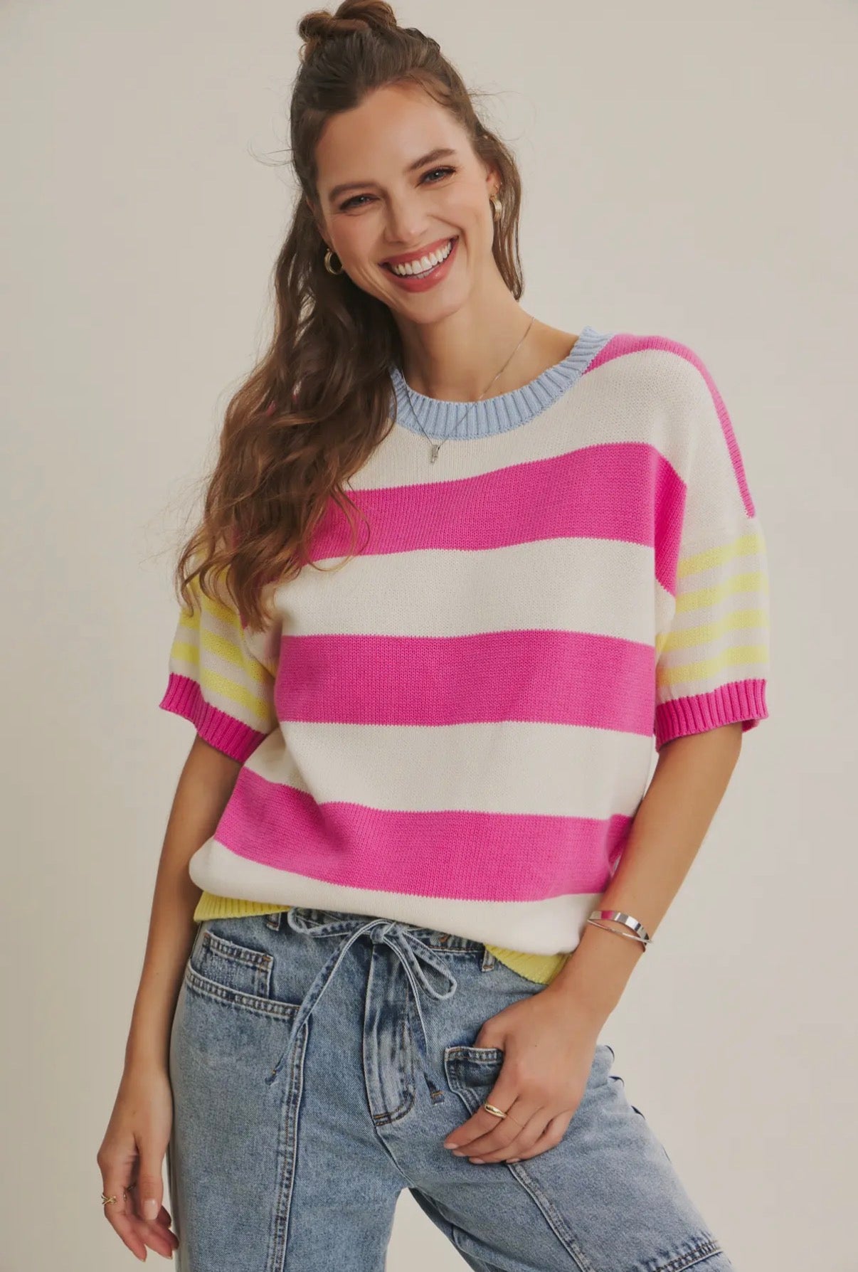 Playful Summer Striped Sweater - Pink - S is backordered and will ship as soon as it is back in stock.